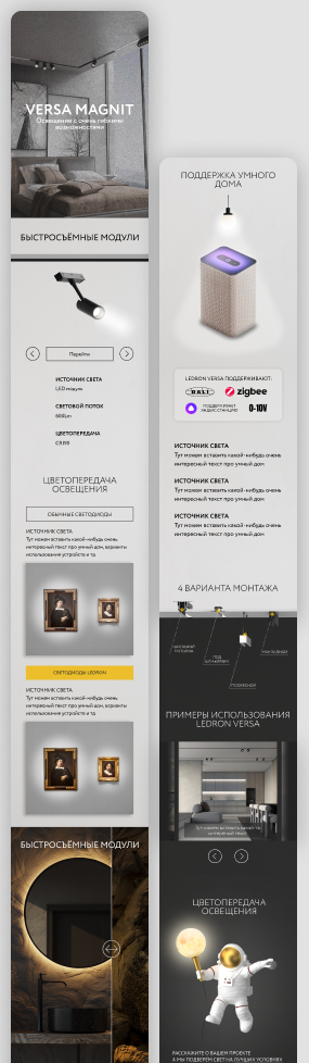 Увеличение продаж компании --- вот что стало основной задачей посадочной страницы. На ней необходимо было разместить наиболее актуальные модели светодиодного оборудования, пользующиеся спросом среди потенциальных клиентов, а также привлечь внимание к примерам их использования и вариантам возможного монтажа.